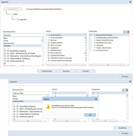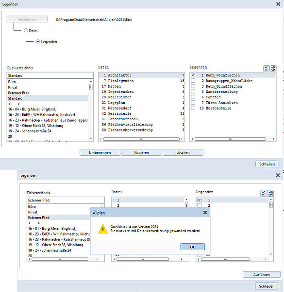 Leider sind die Standardlegenden noch immer im Format 2024 in Allplan 2026-0-4 enthalten.
